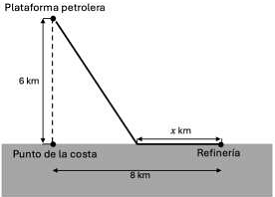 el valor de x para que el coste de construcción del oleoducto sea mínimo.