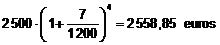 transforma un capital de 2 500 euros depositado durante 4 meses al 7% anual (los