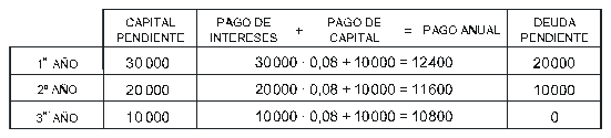 intereses del capital pendiente. Calcula lo que hay que pagar cada año.