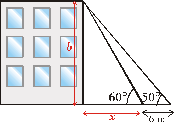 el suelo vemos el punto más alto de un edificio con un ángulo de 60°.