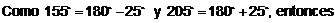 155° y de 205°.