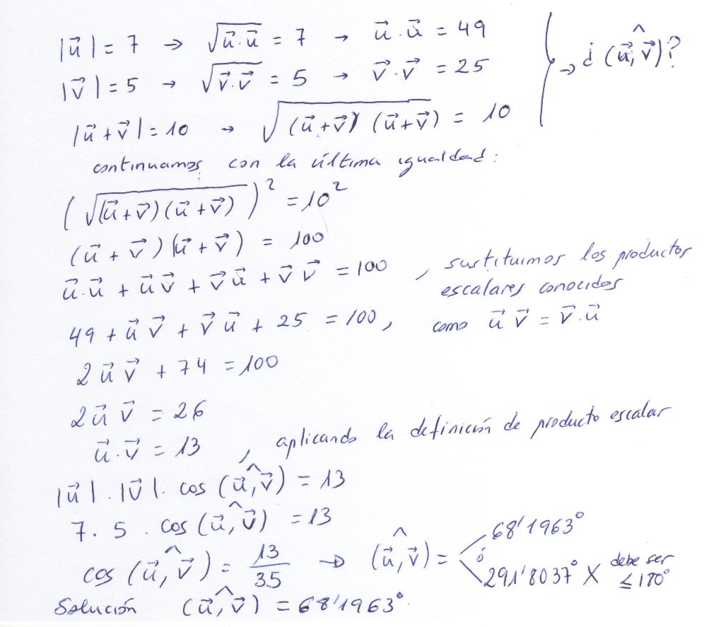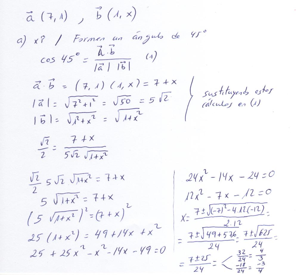 3) Halla el ángulo que forman los siguientes pares de vectores. Haz la representación gráfica.