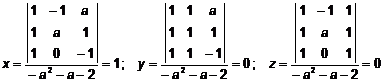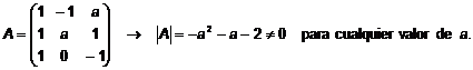 Cada uno de los sistemas que obtenemos, para cada valor distinto de a, tiene como solución única (1, 0, 0).