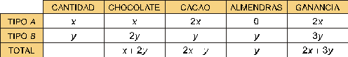 contienen 1 kg de chocolate y 2 kg de cacao; las de tipo B
