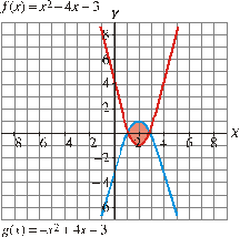 cortan en (1, 0) y en (3, 0). Lo comprobamos: