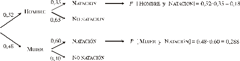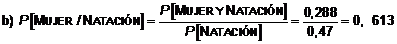 a) P[Natación] = 0,182 + 0,288 = 0,47
