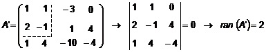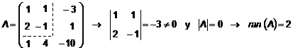 Hallamos el rango de la matriz ampliada: