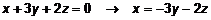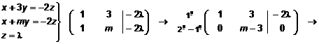 Las soluciones serían: x = - 2l; y = 0; z = l, con l Î R